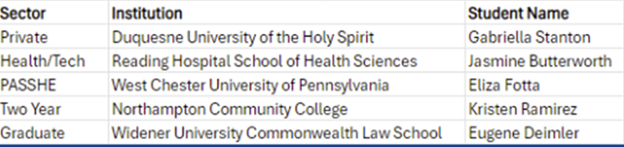 The panel consists of sector representatives elected by the membership. A member of the scholarship panel will recuse from the process when a student from their institution is being considered. Scholarship winners will be selected based on their academic achievement and the content of their written statements. Each member of the panel will individually rank each applicant’s material.